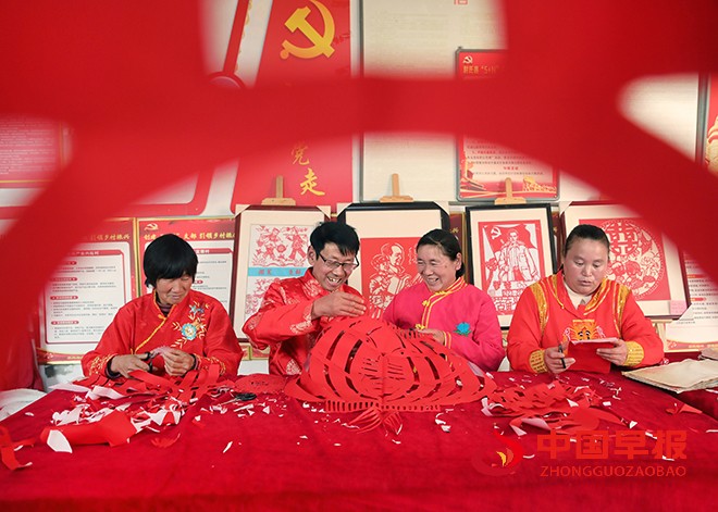 中国早报 河南讯(特约记者 李新义)1月13日,河南省开封市尉氏县庄头镇马家村的非遗剪纸艺人在剪迎新春剪纸订单。