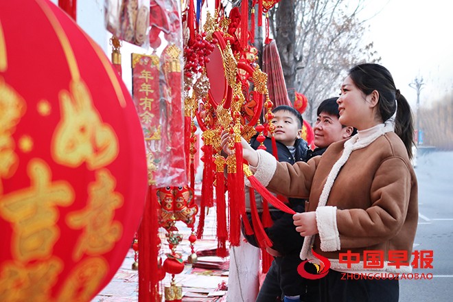 中国早报 河南讯(特约记者 李新义)1月20日,在河南省开封市尉氏县滨河路年货市场,居民们在精心选购新春节庆饰品。