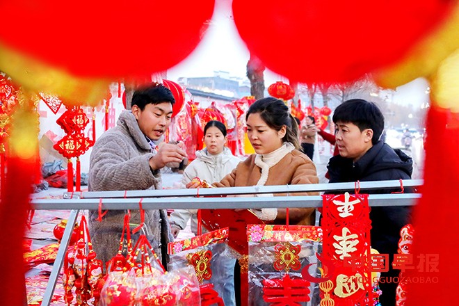 随着农历蛇年春节的脚步日益临近,居民们纷纷涌上街头,为家中增添节日氛围,一时间,河南省开封市尉氏县的大街小巷都被喜庆的饰品装点,处处洋溢着浓浓的节日气息。