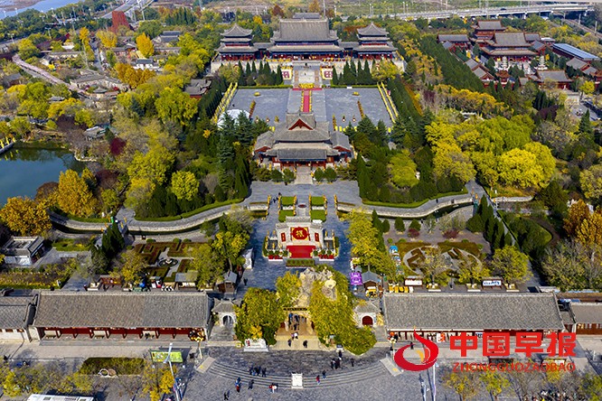 中国早报 山西讯(特约记者 田红萍)11月11日,山西省临汾市洪洞县大槐树景区秋意正浓,层林尽染如诗如画。古槐虬枝苍劲,金黄落叶随风轻舞,青翠松柏点缀其间相映成趣,勾勒出 “根祖圣地” 的绝美画卷。景区内,游客驻足定格秋景,静听移民往事,在光影流转中感受 “走遍天涯,洪洞是家” 的绵长乡愁。