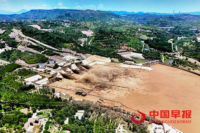 中国早报 河南讯(特约记者 李新义)7 月 6 日,河南洛阳黄河小浪底水库启动排沙作业。浑黄的河水如咆哮的黄龙从调水调沙洞奔腾涌出,上演 “黄龙出闸” 的壮观景象。