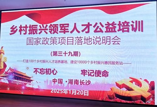 中国早报长沙讯(王益群 李顺平)1月-20日日——21日,第三十九期乡村振兴领军人才公益培训国家政策项目落地说明会在长沙市旺德府万象时代T2栋15楼隆重举行。本次说明会聚焦“参与乡村振兴,实现共同富裕”主题,旨在深入贯彻国家乡村振兴战略,推动相关政策落地实施,为乡村振兴事业凝聚人才力量。