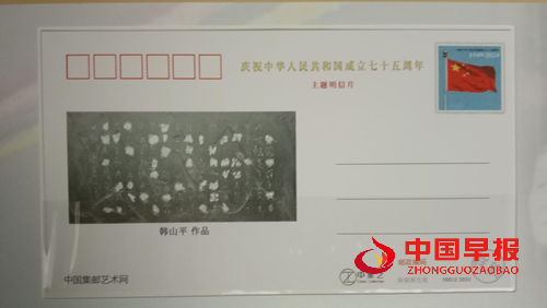 韩山平老师荣获“中国邮政”“中集艺”庆祝中华人民共和国成立七十五周年主题明信片、建国七十五周年艺术功勋人物,还入选“中国邮政·金龙献瑞·中国当代书画艺术百强主题明信片”。