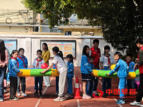 中国早报长沙讯(通讯员 黄鹏)3月27日,望麓园小学的操场上洋溢着欢声笑语,长沙市飞翔教育创新发展中心携手开福区望麓园街道富雅坪社区新时代文明实践站、望麓园小学共同组织开展了“逐梦绿茵 童趣无限”趣味运动会,旨在通过趣味横生的体育项目让孩子们在欢乐中锻炼身体,享受运动的乐趣,同时促进师生间、同学间的情感交流,充分展示学生们团结进取蓬勃向上的精神风貌。活动吸引了70余名学生积极参与,孩子们化身“运动小将”,在妙趣横生的团队游戏中挥洒汗水、释放活力,感受运动的快乐和团队合作的魅力。